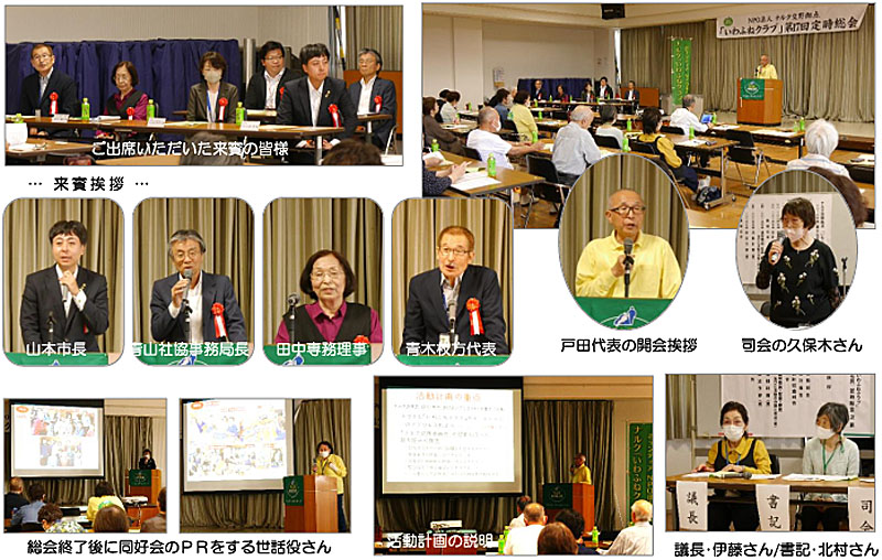 本年は、初めての試みで午後の定時総会開催(午後1時30分開会)となり、これまでの総会終了後の懇親会に代えて、今回は「いわふねクラブ」同好会活動のうち、5つの同好会世話役の方から活動内容等の紹介や入会勧誘が行われました。予定の行事を終え午後3時30分に散会しました。